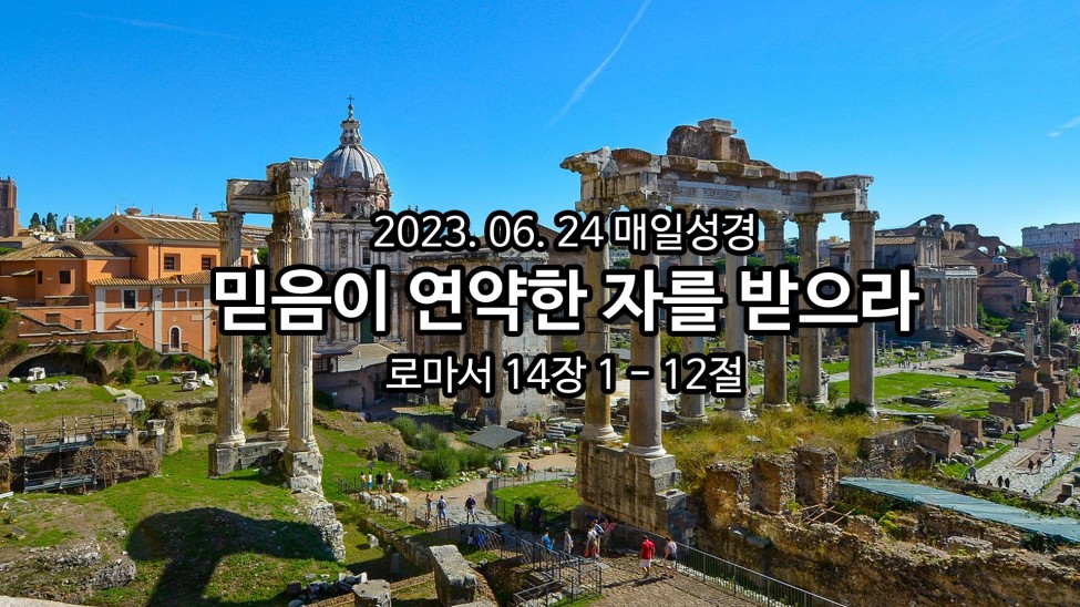 바울은 연약한 믿음도 믿음이라는 사실을 강조합니다. 그 사람도 믿음으로 하나님이 받으신 바 되었고(3절), 결국은 그를 권능으로 세우시고 인도하실 것(4절)이기 때문에 내가 재판관이 되어 함부로 그를 판단하거나 비판해서는 안 된다는 것입니다. 그를 판단하시는 분은 오직 그 사람의 주인이신 하나님뿐이시기 때문입니다.